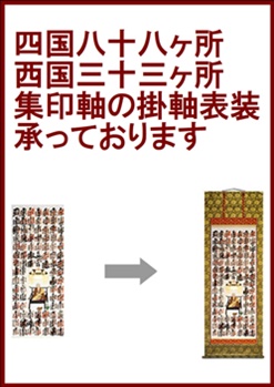 また書、水墨画、四国88ヶ所、西国33ヶ所集印軸の表装、軸装を低価格から承っております。